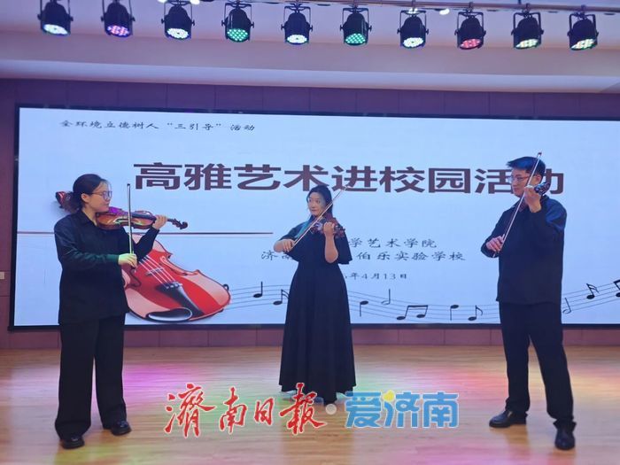 为丰富校园文化生活,提升师生艺术素养,让高雅艺术走进青少年心中、滋养成长之路,4月13日,山东大学艺术学院夏春雨师生团队走进济南高新区伯乐实验学校,开展高雅艺术进校园活动。团队为六年级师生呈现了一场兼具专业性与观赏性的视听盛宴,让艺术之花在校园悄然绽放,让经典旋律浸润学子心灵。