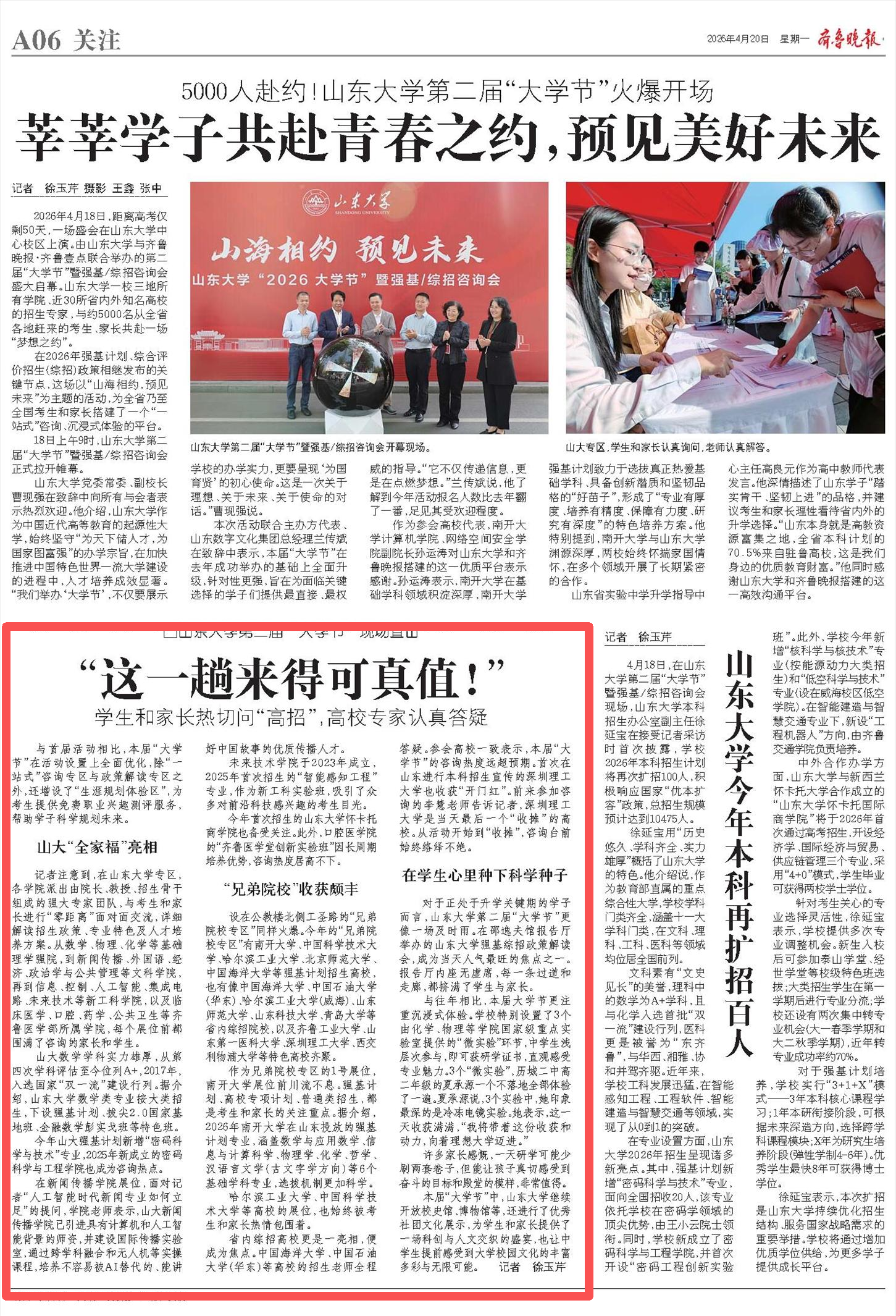 今年首次招生的山东大学怀卡托商学院也备受关注。此外,口腔医学院的“齐鲁医学堂创新实验班”因长周期培养优势,咨询热度居高不下。