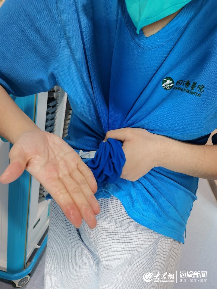 队员高妍说,其实即便是有冰块,也避免不了湿透衣服,“防护服的密闭性实在太好了,护士又要来回走动工作,出汗是不可避免的。”