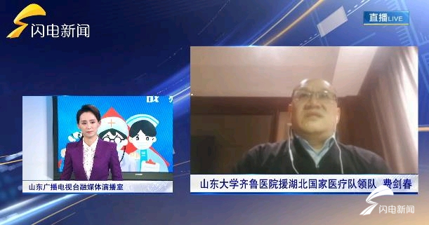 山东大学第二医院医务部主任王若义、山东大学新闻传播学院2017级研究生王明玉做客山东广播电视台,与主持人崔真真现场连线三位援湖北国家医疗队特约嘉宾。