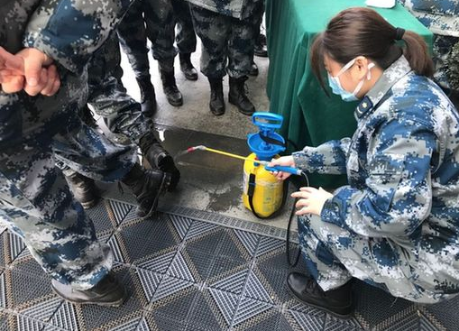 我是空军军医大学唐都医院疾病预防控制科主管护师曹小琴。到武汉已经32天了。作为一名疾病预防控制科主管护师,我的主要工作是保障队友们的安全,不给病毒留下任何可乘之机。我们建立了全接触点消毒杀菌制度,早上,我照常在酒店驻地门口配置消毒液。因为想尽早完成准备工作,本来两次搬完的东西,我一次全拿上了,提着几件,还用肚子顶着几个,就在这时,驻地酒店对接老师徐春华朝我跑了过来,从我手中接过去一大半,还说:“以后这样的事,一定叫上我一起,让我多做些事吧!”