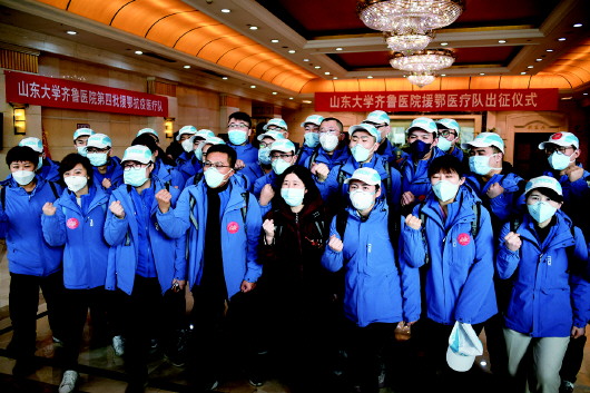 在此之前,山东大学齐鲁医院、山东大学第二医院已先后派出三批援助力量,截至目前,累计派出支援湖北疫情防控的人数达到295人。面对新型冠状病毒的肆虐,山大人主动请缨,勇敢“逆行”,向着战“疫”最前线迅速集结。