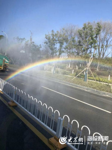 返回宾馆的途中,空旷的马路上,遇到了洒水车,洒水车过后,我们幸运的见到了彩虹。色彩绚丽的彩虹桥,仿佛连接胜利的彼岸!