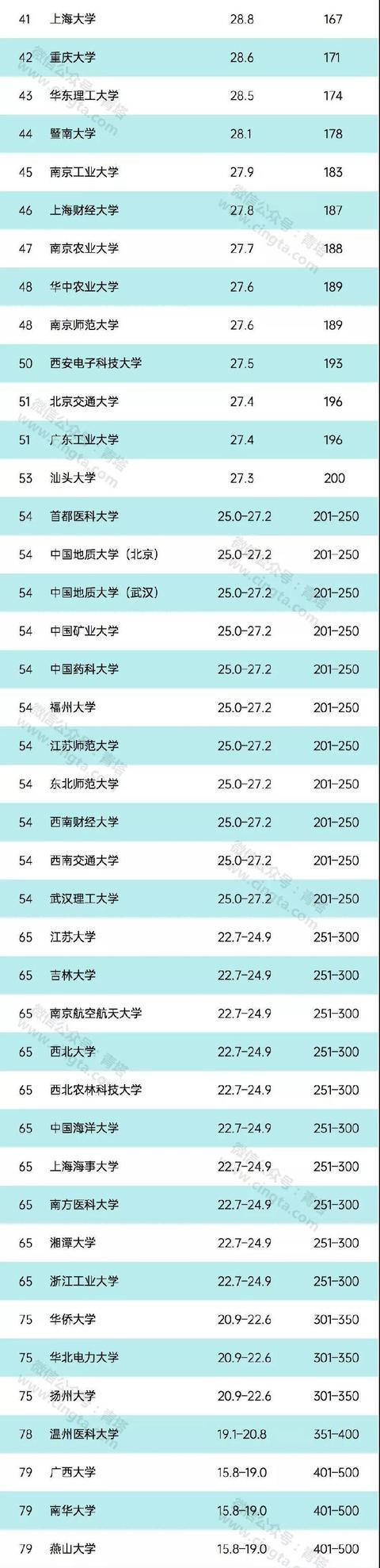 今年共有全球47个国家和地区的533所高校上榜。排名位居前50的高校中,中国高校优势明显,共有24所入围,俄罗斯共有5所,印度共有4所,南非和沙特阿拉伯各有3所,其他高校入围数少于3所。