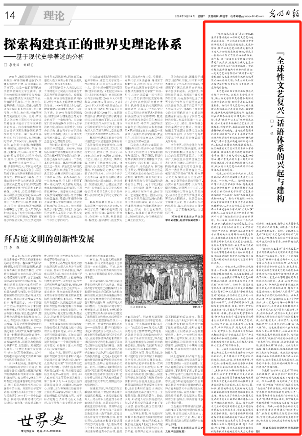 “全球性文艺复兴”是21世纪欧美学术界兴起的一种研究文艺复兴运动的新视角。它主张在全球情境中重新审视文艺复兴运动的起源、发展和影响,揭示出文艺复兴运动先前许多不为人所知或被忽视的面相,形成了一套新的书写文艺复兴的话语体系。近年来,这一话语体系受到国际学术界的广泛关注,被视为打破文艺复兴研究“欧洲中心论”的重要路径。它的兴起与建构源自两个重要的推动力:一是文艺复兴学界对以“欧洲中心论”为基础的文艺复兴的西方现代化叙事范式的批评与反思;二是全球史的理论与方法对断代史和专门史教学、研究领域的影响。