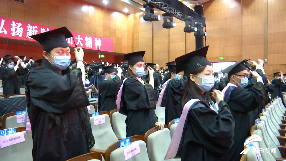 今年,山东大学的济南、青岛、威海三地的8个校区首次同时举行线上毕业典礼。近万名毕业生在线参加毕业典礼,但是在主会场仅有200名毕业生代表参加。往年,都是校长亲手为同学们“拨穗”,今年则是自己动手。