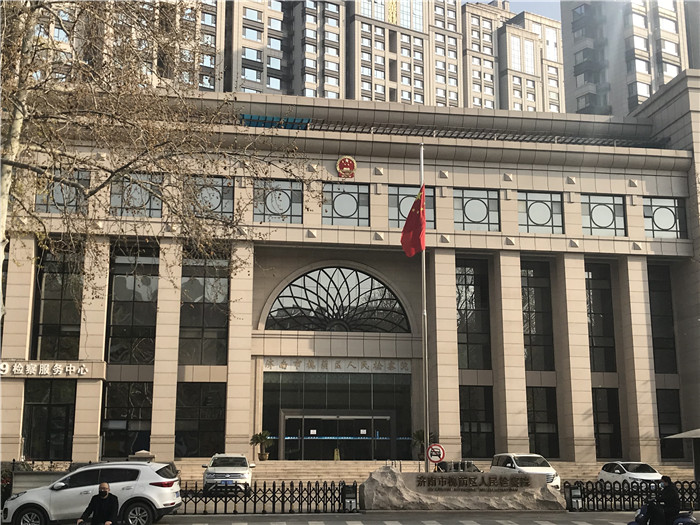 济南张庄路北侧,槐荫区人民检察院门口降下半旗志哀。(新时报记者 丁国彬)