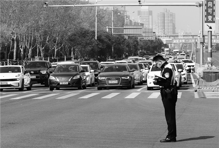 经十路的车辆纷纷鸣笛默哀。(新时报记者 陈元昊)